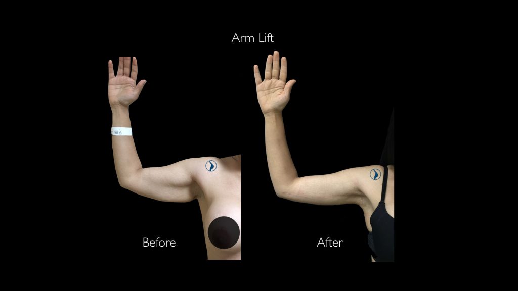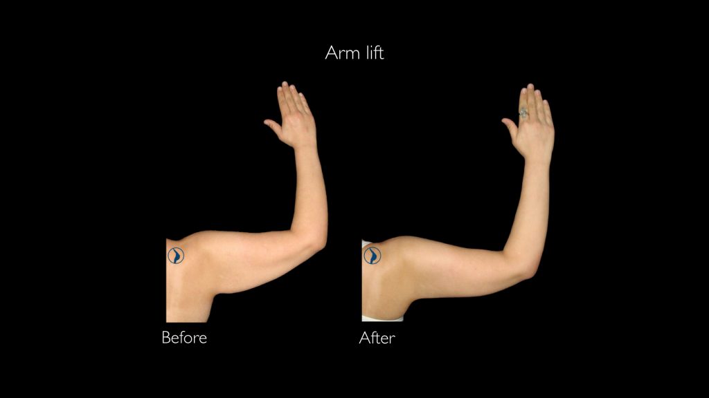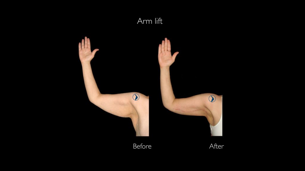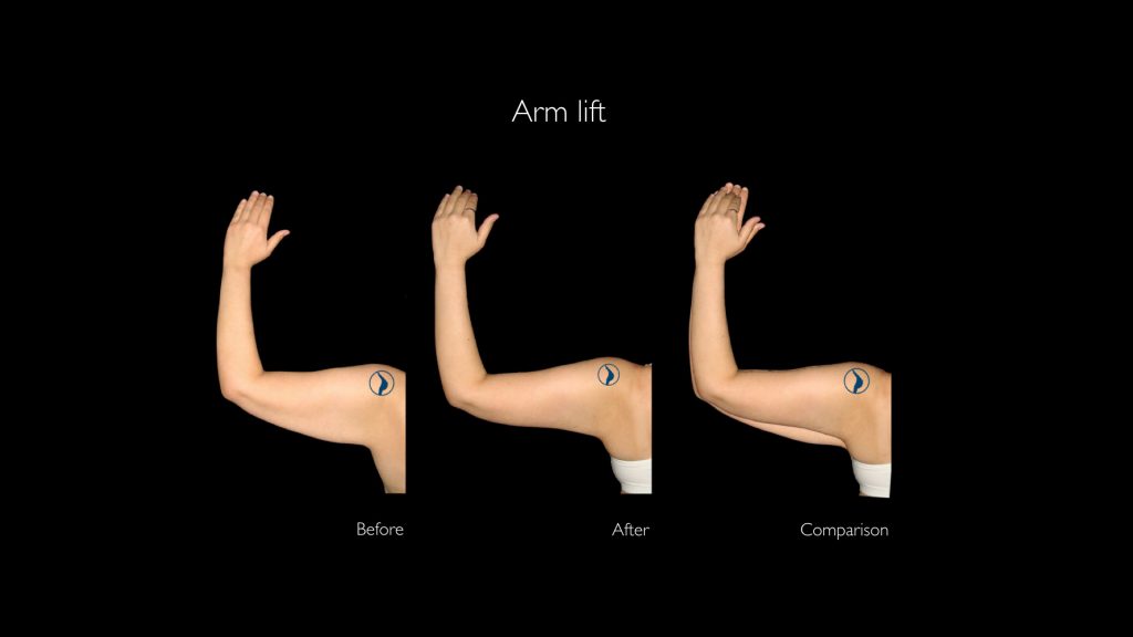 The procedure consists of cutting and removing skin along the inner side of the arm to hide the scar and may or may not require liposuction to achieve a more natural result.