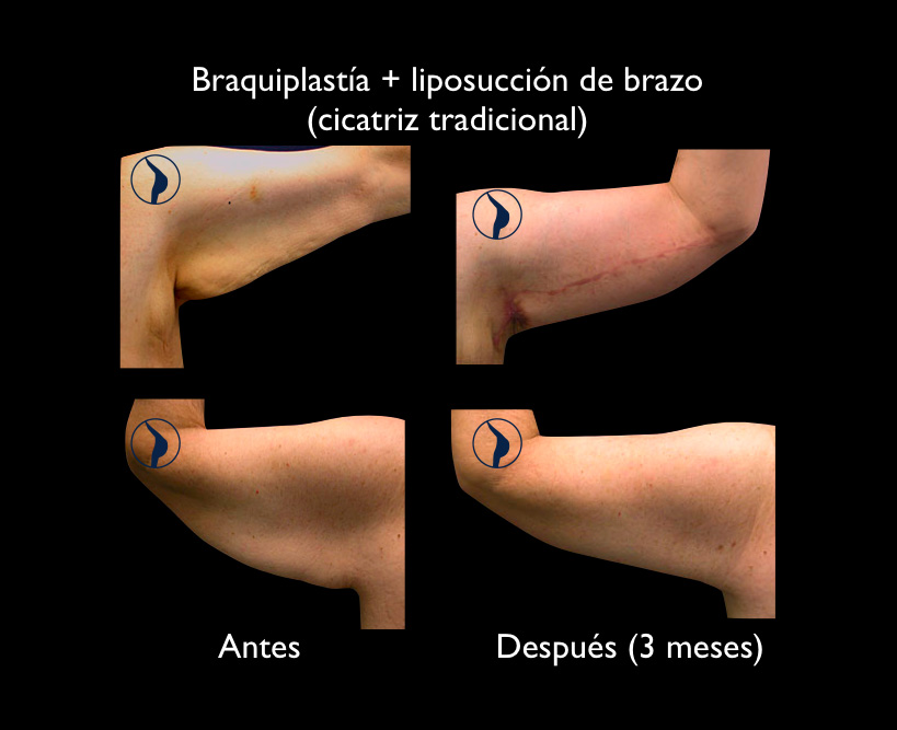 In patients with slight or moderate overweight the arm can be susceptible to improve with liposuction without requiring skin cuts and in fact, many patients come to the office with the idea of having liposuction only before thinking about brachioplasty, however, in case of older patients or with significant overweight, or in case of having lost weight significantly, the flaccidity limits the conservative option and it is necessary to correct it by cutting and removing the skin of the arm.